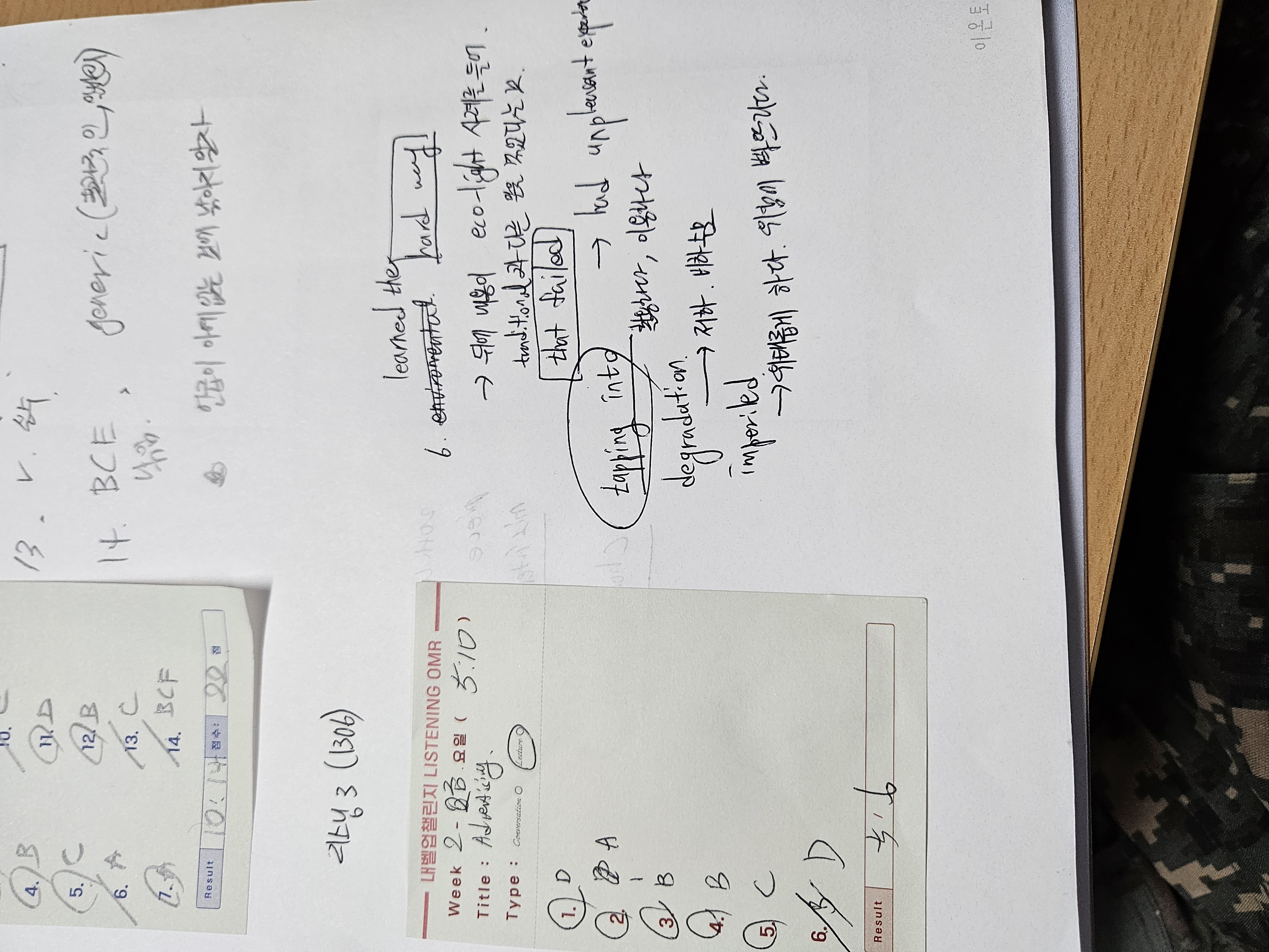 리스닝 3, 단어 2페이지 모두 완료입니다.