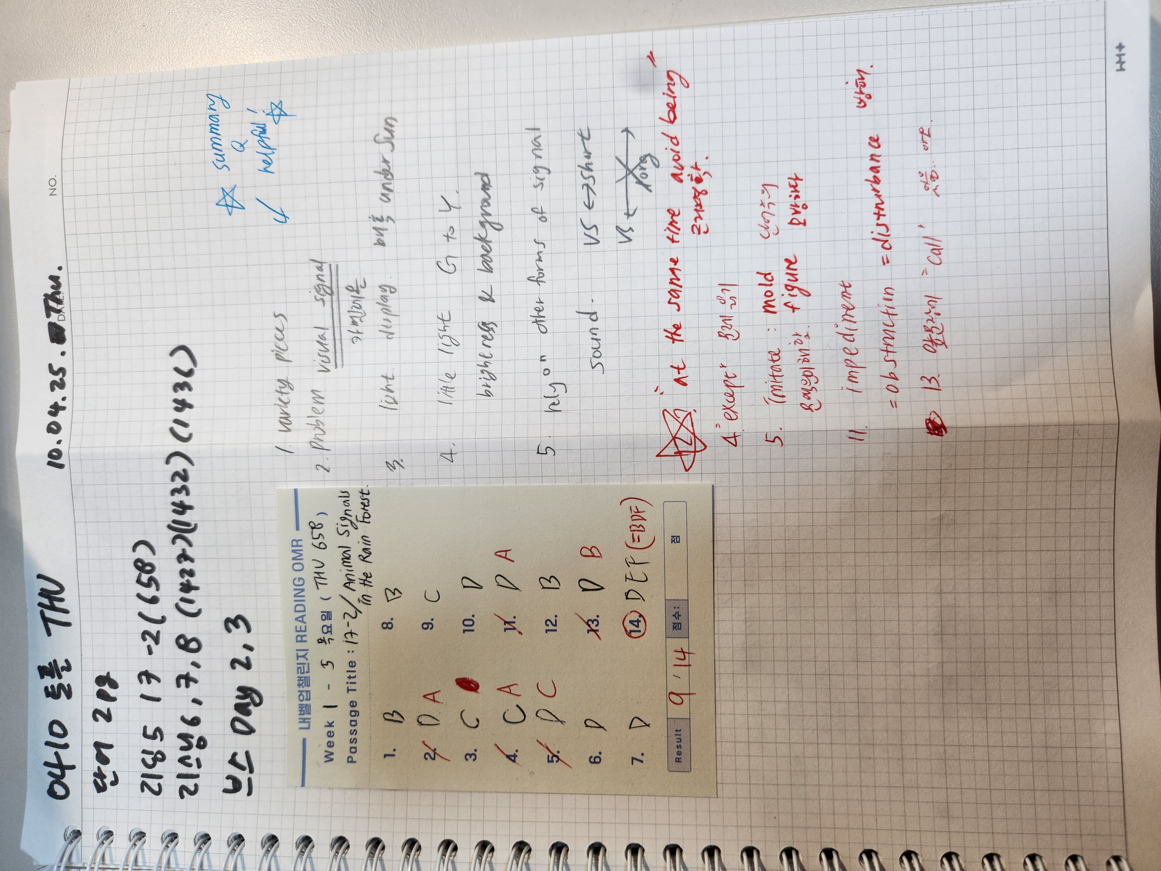 리스닝은 어제보다 떨어졌다. 확실히 주제가 어려워지니 잘 들리지 않아 명백하게 보기를 소거하는 것이 참 어려웠다.