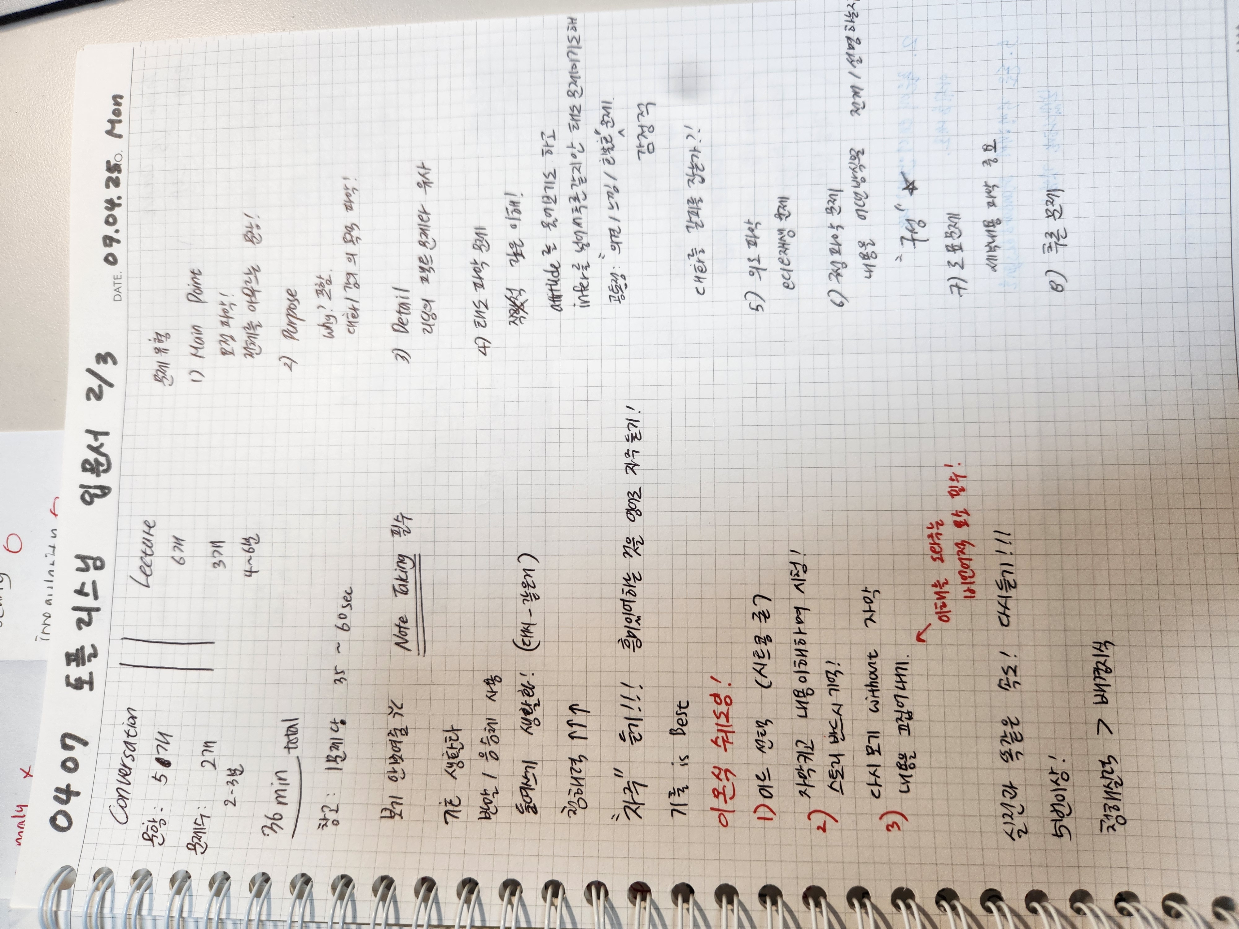 리스닝 실수가 너무 많아 속상했지만 다 디테일 부분을 놓쳐 틀린 실수라 더 속상했다. 단어는 오늘 단어가 더 쉬웠고 어제것도 함께 복습했다. 리스닝을 많이 해서 청해력을 길러야겠다.