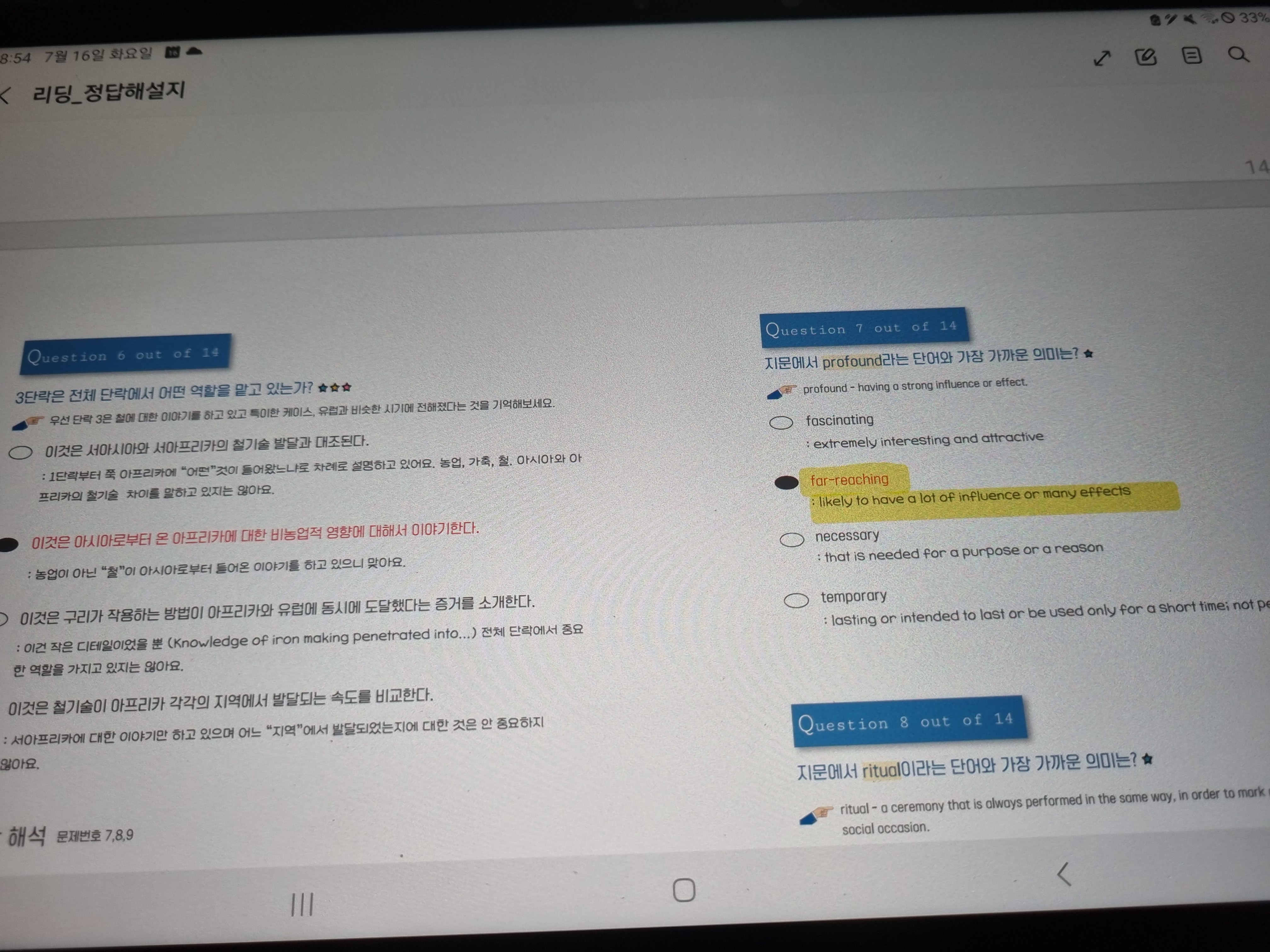 단어 16,17 및 리딩완료
