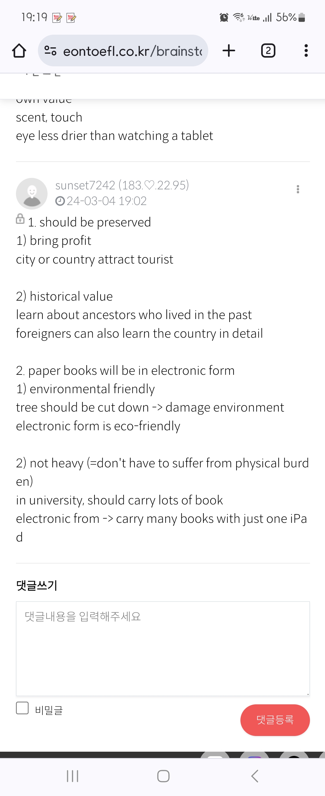 이제 점점 리딩을 덜 틀리기 시작한거 같다. 오늘 지문이 쉬웠나..ㅋ