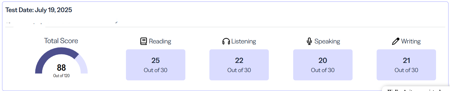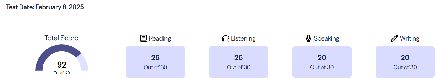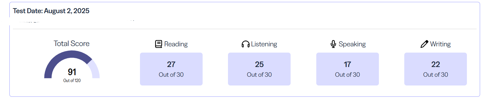 첨삭 과정중에 본 시험은 각각 88점 91점이었고 리딩과 리스닝은 과거에 비해 점수가 많이 올랐지만 스피킹과 라이팅은 점수 변화가 없었어서 솔직히 포기 하고 싶었는데 첨삭 기간이 끝난뒤에 시험을 한번 더 보라고 권유해주셔서 POST과정에서 스피킹과 라이팅 공부를 더 했습니다. 스피킹 라이팅 공부를 하면서 AI로 문법 점검, 글의 구조등을 계속 점검했고 제가 말한 버젼보다 향상된 버전을 계속 공부했습니다. 개강을 한 상태고 9to6 인턴 생활을 하는 중이라 하루에 2시간 정도 밖에 투자를 못했고 마지막 시험 전날 라이팅이랑 스피킹 공부를 6시간 정도 했습니다.
