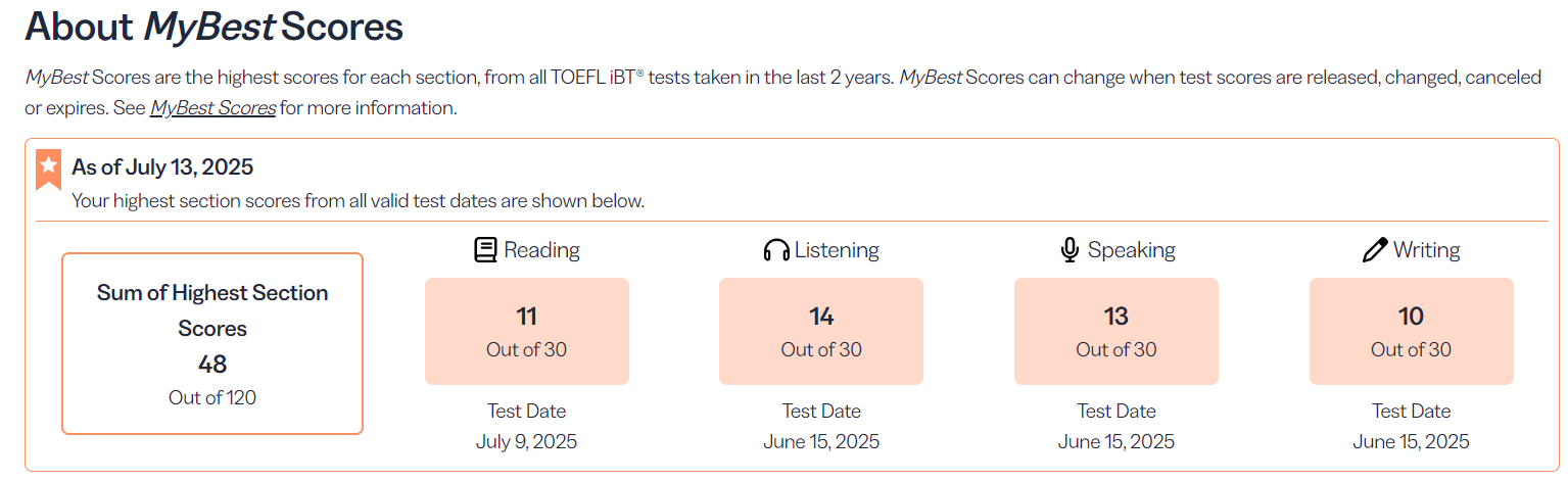 결론적으로 목표점수는 달성하지 못했다! 그리고 그 이유는 온전히 나에게 있다^^. 초반에는 열심히 진도를 따라갔으나, 중반부터 직장에서의 업무가 바빠지며, 공부에 소홀했다. 궁극적으로는 첫 테스트 결과를 보고 '아, 유학은 가기 힘들겠다.'라는 생각이 들면서 스라첨삭도 정말 대충 대충 했다. 변명을 하자면, 만약 직장병행 없이 토플에 올인했다면, 목표점수에 가까운 점수를 냈을 거라는 생각이 든다.
