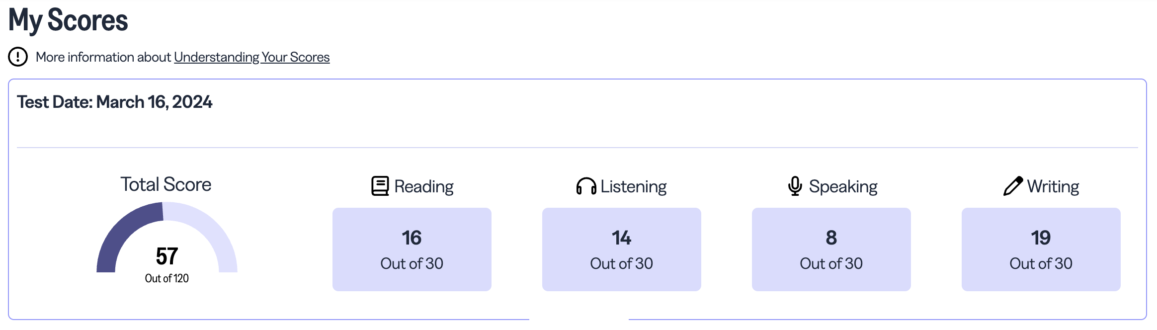 스피킹 점수는 템플릿을 달달 외우고, 리스닝 점수가 오르며 같이 올랐지만 여전히 낮은 점수가 나왔습니다.