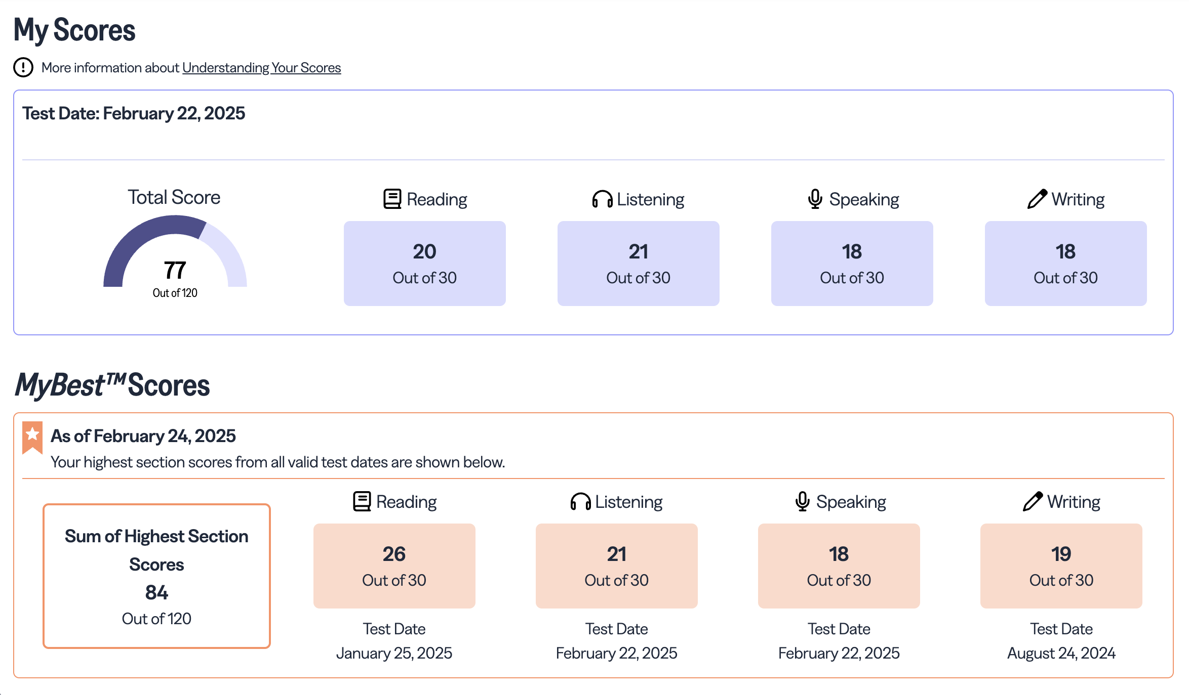 아직 목표 점수에 한참 모자르지만, 그래도 공부 방향성이 잡히고 막막함이 덜어져서 큰 스트레스 없이 POST 과정 밟으며 토플 공부에 집중할 수 있을 것 같습니다.