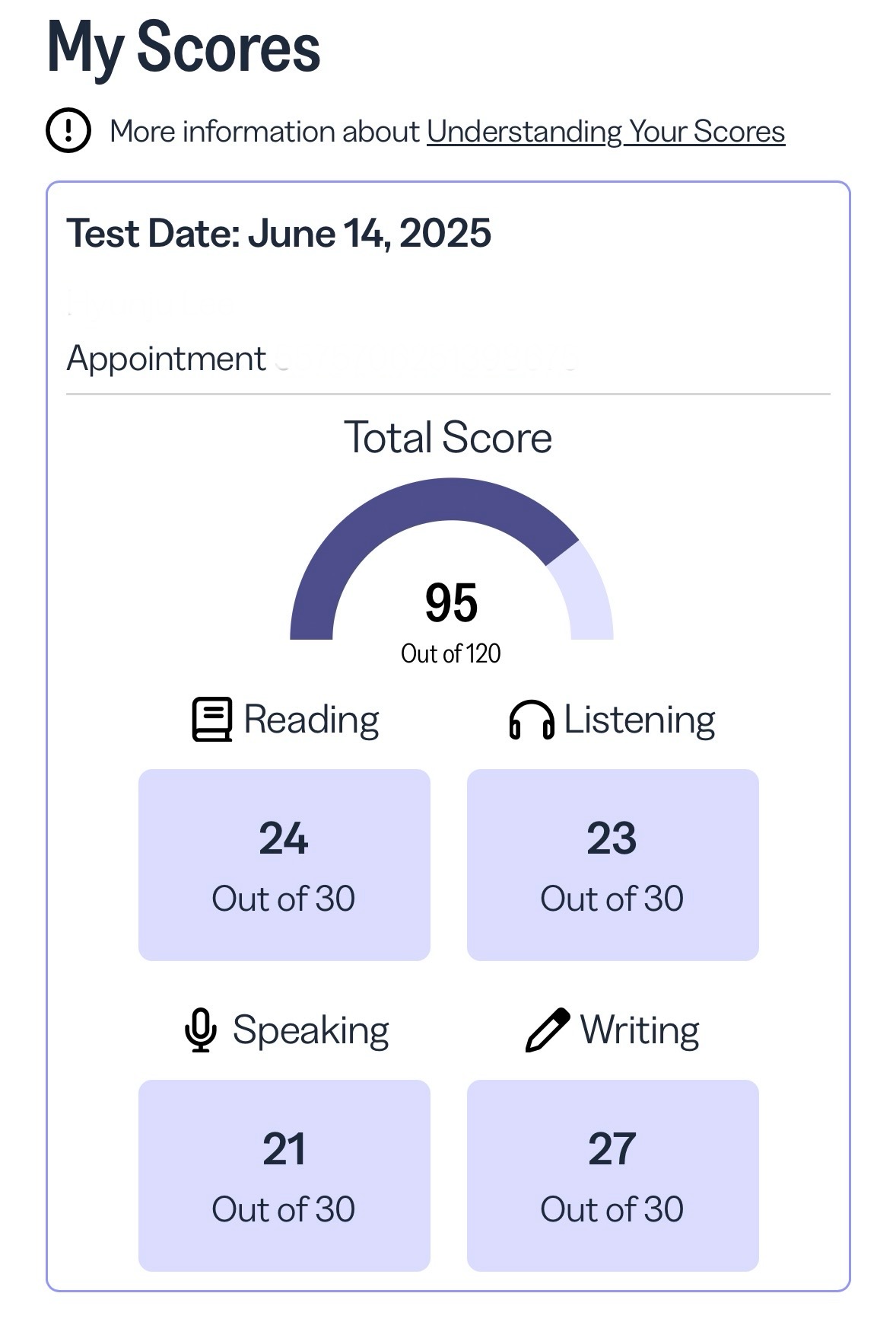 -스라 첨삭: 제가 예상했던 것보다 훨씬 더 꼼꼼한 첨삭이어서 선생님이 첨삭해주신 내용을 바탕으로 다시 써보고 말해보고, 제것으로 만드는 과정이 개인적으로 힘들었지만 그만큼 많은 도움을 받았습니다. 단순히 토플 스라 첨삭을 넘어서, 전반적인 영어 스피킹, 라이팅이 업그레이드 되는 것 같았어요. (스피킹은 자신이 없고 문제만 나오면 얼어버려서 점수가 오르지 않았지만, 라이팅은 통합형과 토론형 첨삭을 받으면서 어떤 부분을 잘 실수하는지 캐치하고, 오프토픽이 나오지 않게 쓰는 걸 배워서 점수가 많이 오른 것 같습니다. )
