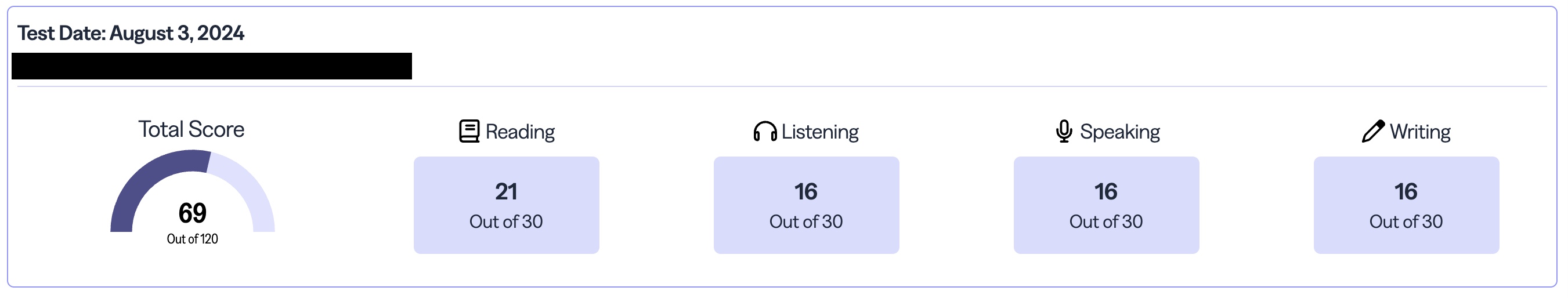 많은 분들의 후기를 보고 열심히 하면 9-10월엔 토플 점수 금방 딸 수 있겠지라고 생각했어요.