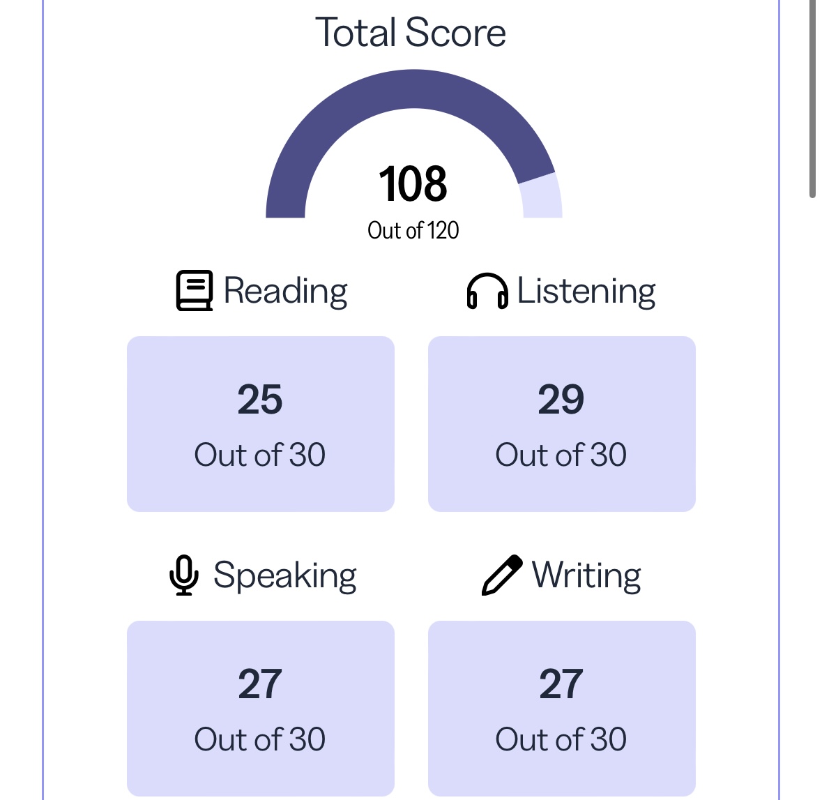 당일에 생각보다 떨렸습니다. 저는 시험에 절대 떠는 성격이 아님에도 불구하고 뭔가 엄숙함.. 그리고 이 어마어마한 가격^^때문에 부담이 되더라구요. 리딩때는 지문이 안읽혀서 돌아가고 다시 돌아가기를 반복했습니다. 솔직히 당황하지 않고 다음 지문부터 풀었다면 시간에 덜 쫓겼을 듯 한데 긴장한 나머지 시간 배분을 잘 못해서 그점이 가장 아쉽습니다. 다시 한번 본다면 리딩 성적을 더 잘 끌어올릴 수 있을 것 같았지만.. 목표점수는 넘어버려서(?) 이정도에 만족합니다. 이온님이 거듭 강조하신 첫 시험은 내 실력만큼 절대 안나온다, 가 무슨 뜻인지 알겠더라구요 ㅎㅎ 하지만 저는 시험을 많이 봐야 한다는 말에 동의했고, 급하게 성적이 필요하지 않도록 미리 응시를 시작한 터라 부담은 덜했습니다. 리스닝은 워낙 자신 있었고, 스피킹 라이팅은 진짜 더도 말고 덜도 말고 연습한 대로만 실력 발휘한 것 같습니다.