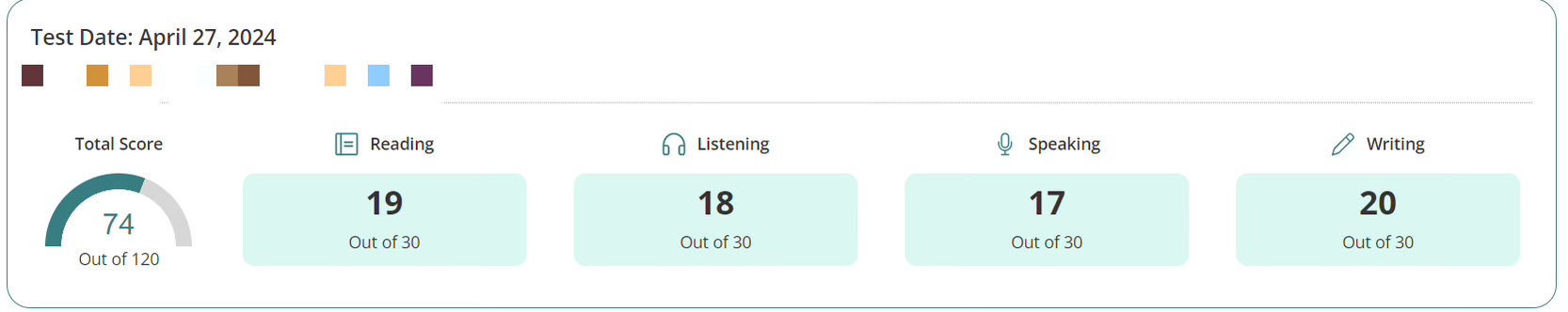 22점 점수상승이라는 제목을 보고 들어오신 분들은 최종 점수가 74점이라는 것을 보고 실망하실 수 도 있다고 생각합니다. 그러나, 제가 이온을 통해 얻은 것은 점수 뿐만이 아닙니다. 자신감과 용기, 더 큰 열정은 제게 또다시 도전할 기회를 만들어주었습니다. 이제 주눅들지 않고 열심히 더 공부해서 최종목표인 100점까지 달려보겠습니다. 좋은 출발을 만들어주셔서 감사해요, 이온토플!!