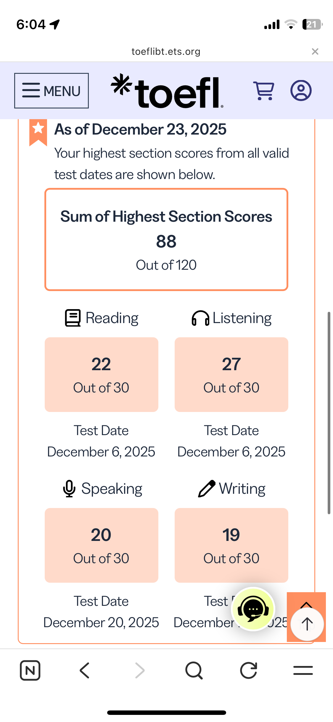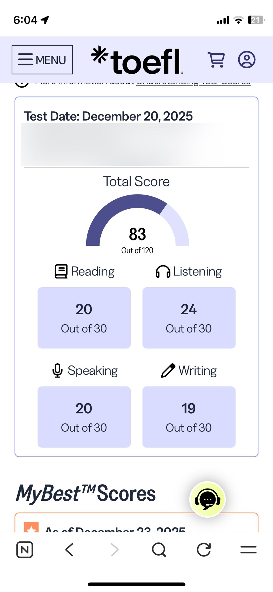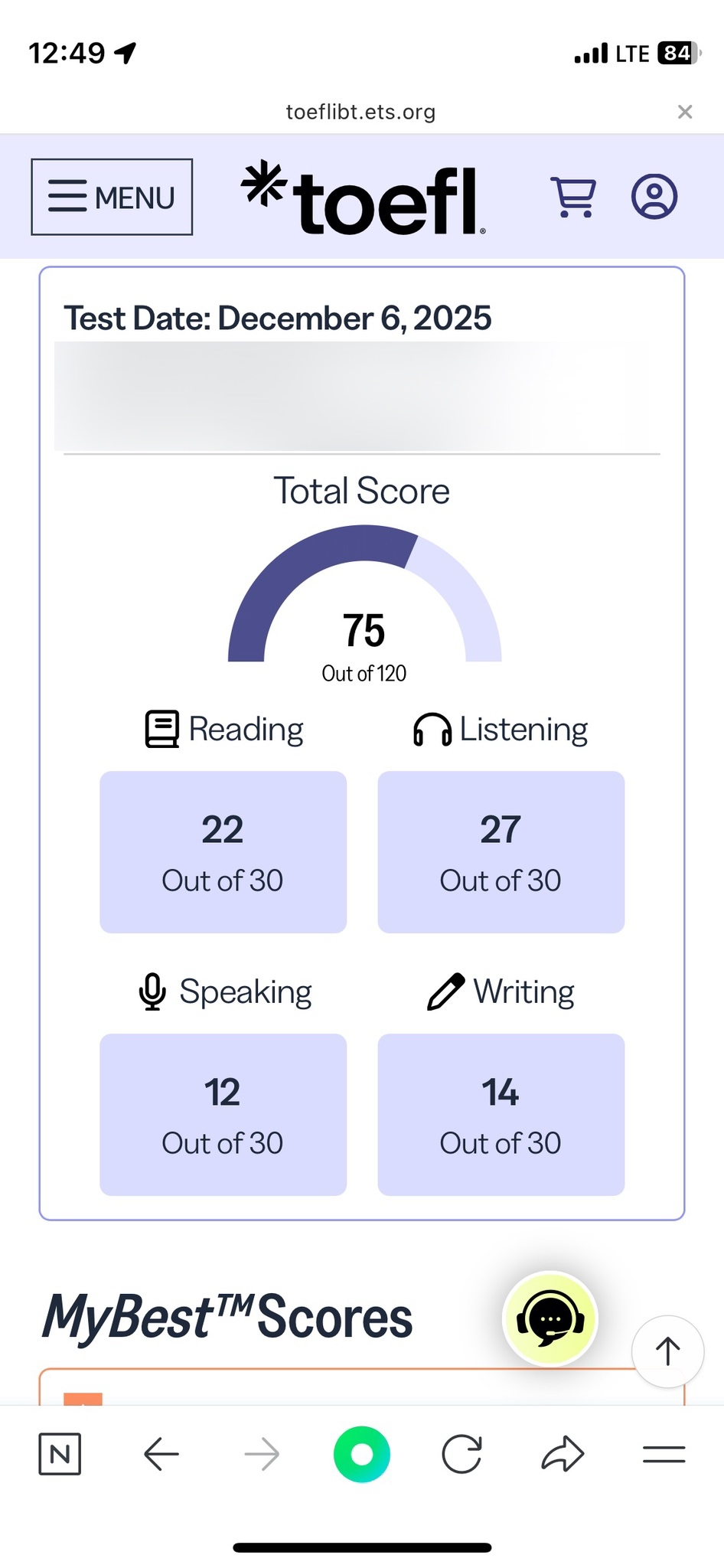 첫 시험(76점)이 비교적 리딩(22점)과 리스닝(27점)이 제 생각보다는 잘 나왔고, 롸이팅과 스피킹이 너무 처참했습니다.
