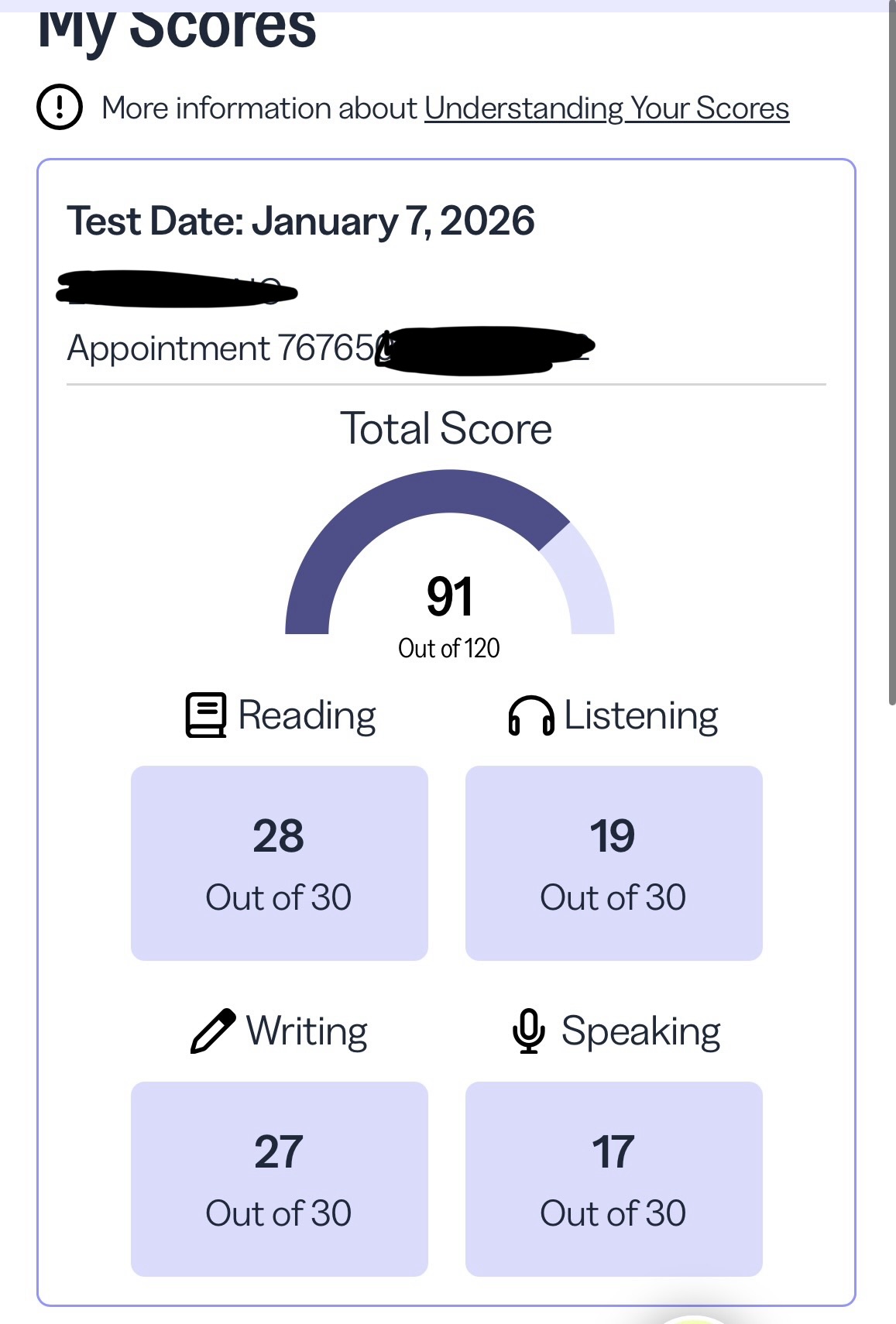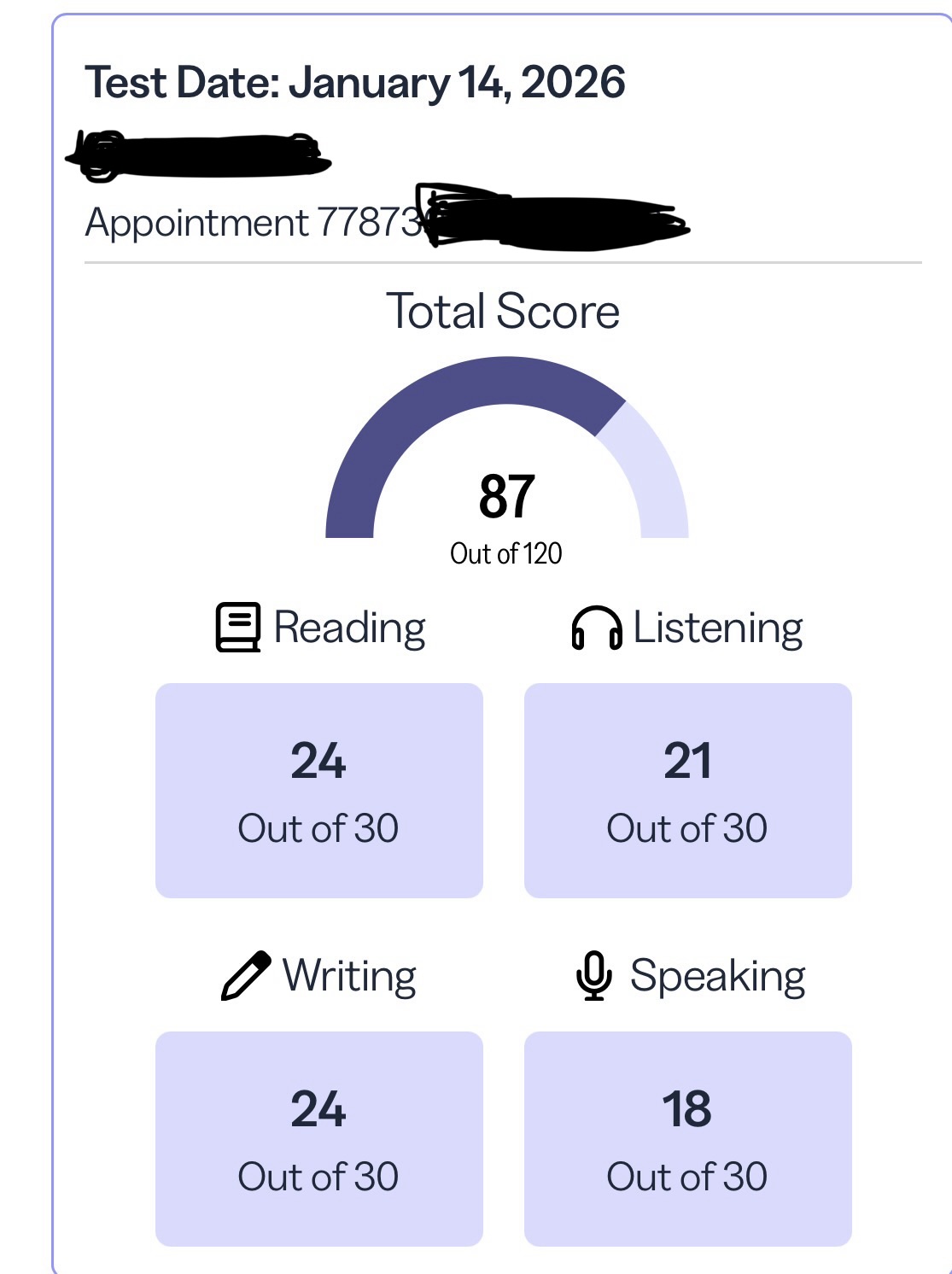 이온토플 전에 리딩을 21점 라이팅을 23점을 받은 경험이 있는데 이번에 28점, 27점이라는 높은 점수를 받게 되어 너무 만족스럽습니다!