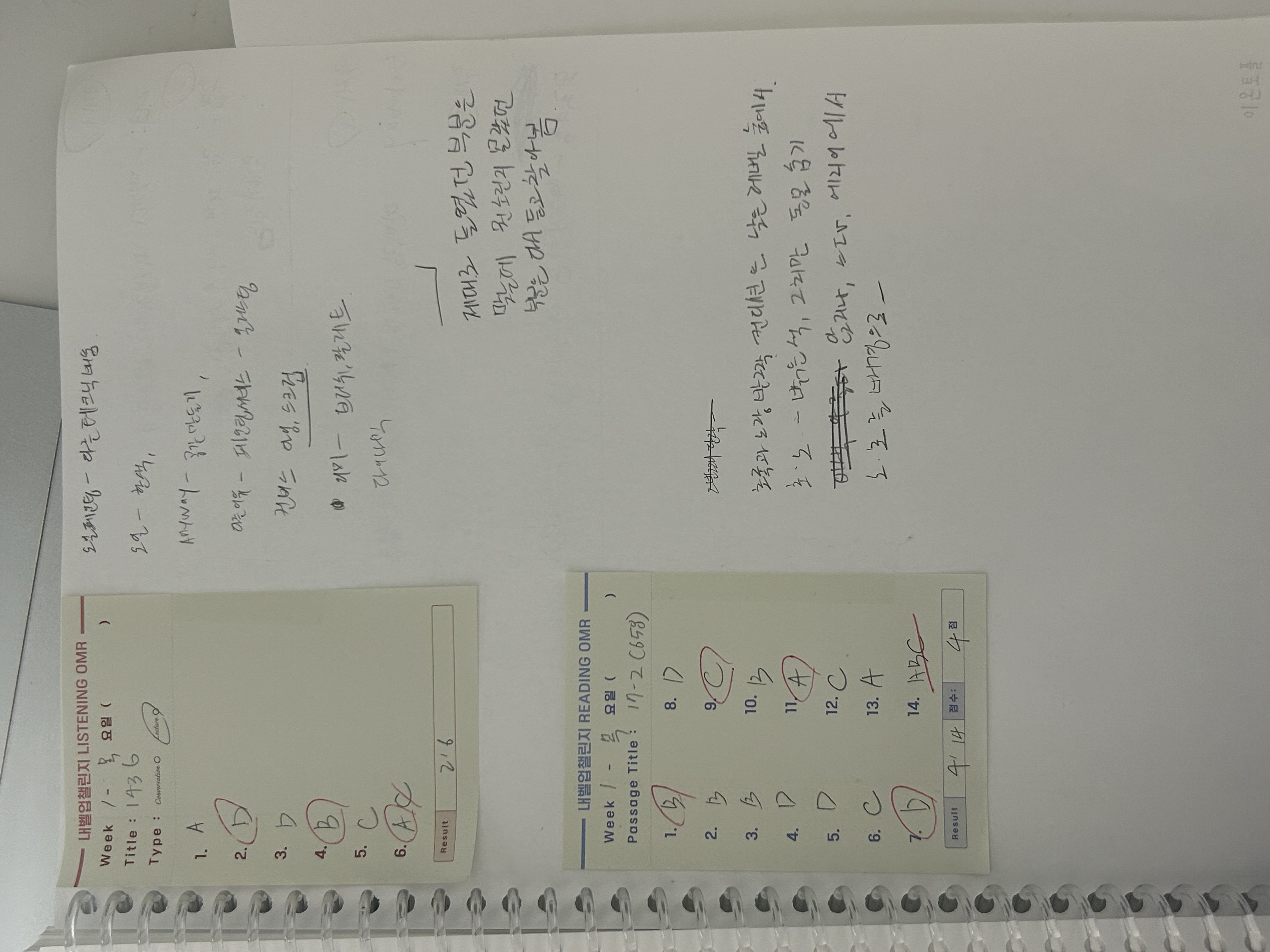 리스닝은!!! 그래도 들린부분에서 적어두고 푼 문제는 맞았다!! 오예