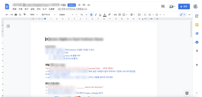 ▸첨삭본은 구글 Docs(구글닥) 기반으로 작업합니다.