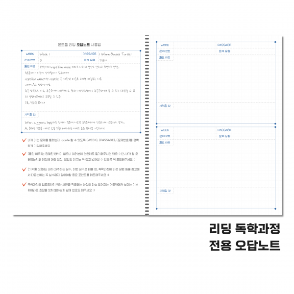 깔끔하게 정돈할 수 있게 리딩 전용 오답노트와