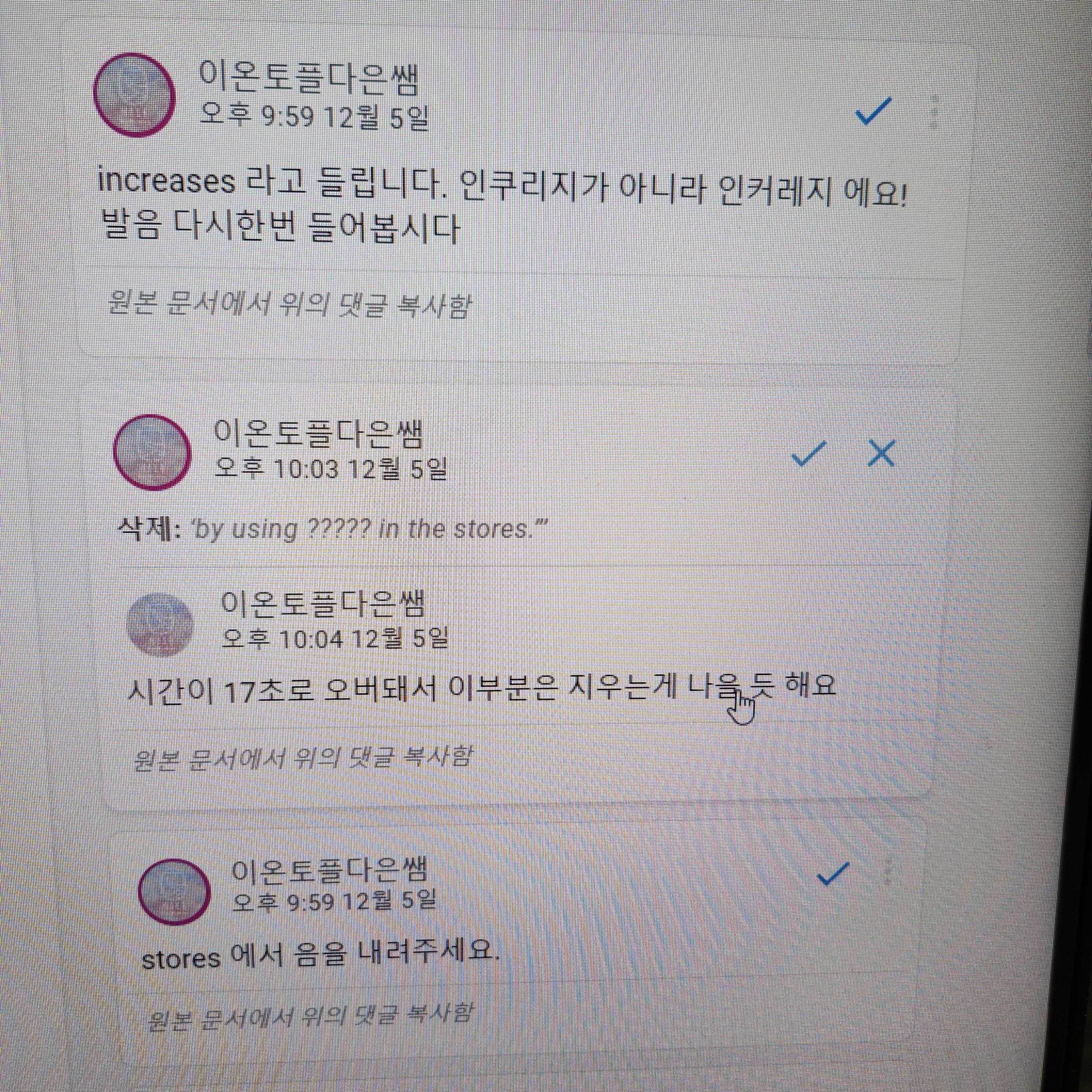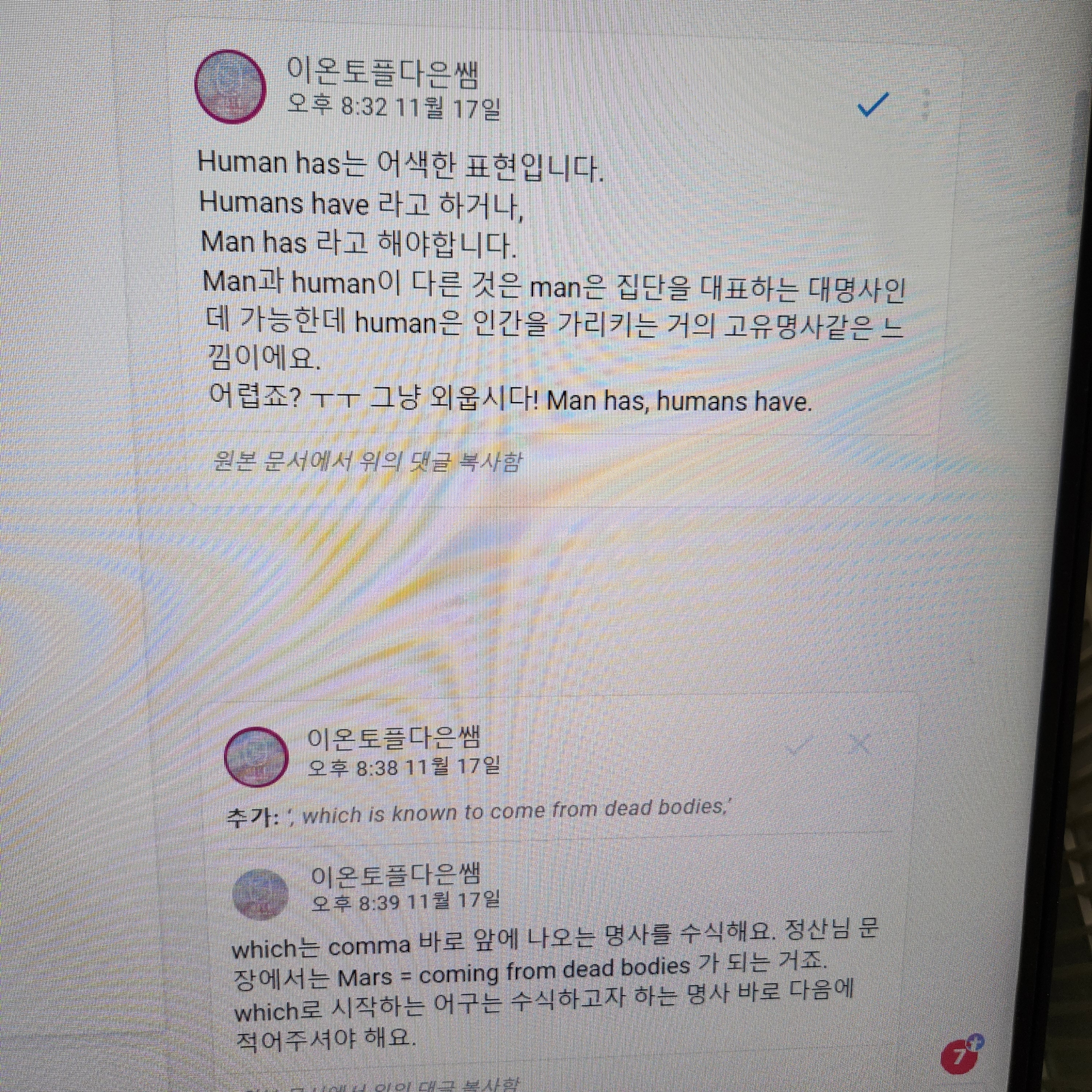 이온 토플의 감성과 책을 만들어 준 선생님의 진심이 느껴져서